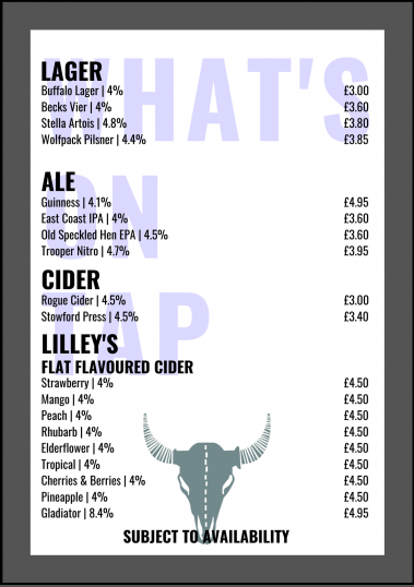 Just ask our friendly bar staff for a personal recommendation, or try something new!